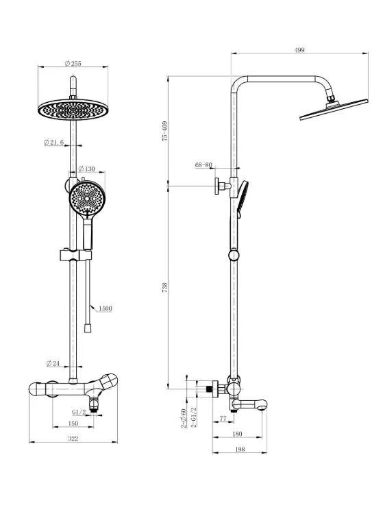 | Комплектация: | смеситель , термостат , кронштейн , шланг , держатель , лейка , стойка , верхний душ , излив |