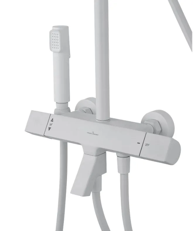 Душевая система Wonzon & Woghand The One WW-B3094-MW термостатическая, с изливом, белая матовая