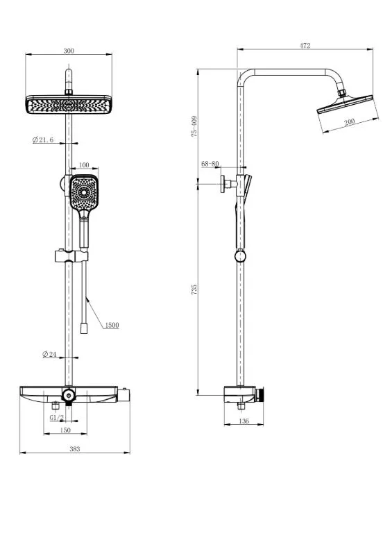 | Комплектация: | излив , верхний душ , смеситель , термостат , кронштейн , шланг , держатель , лейка , стойка |