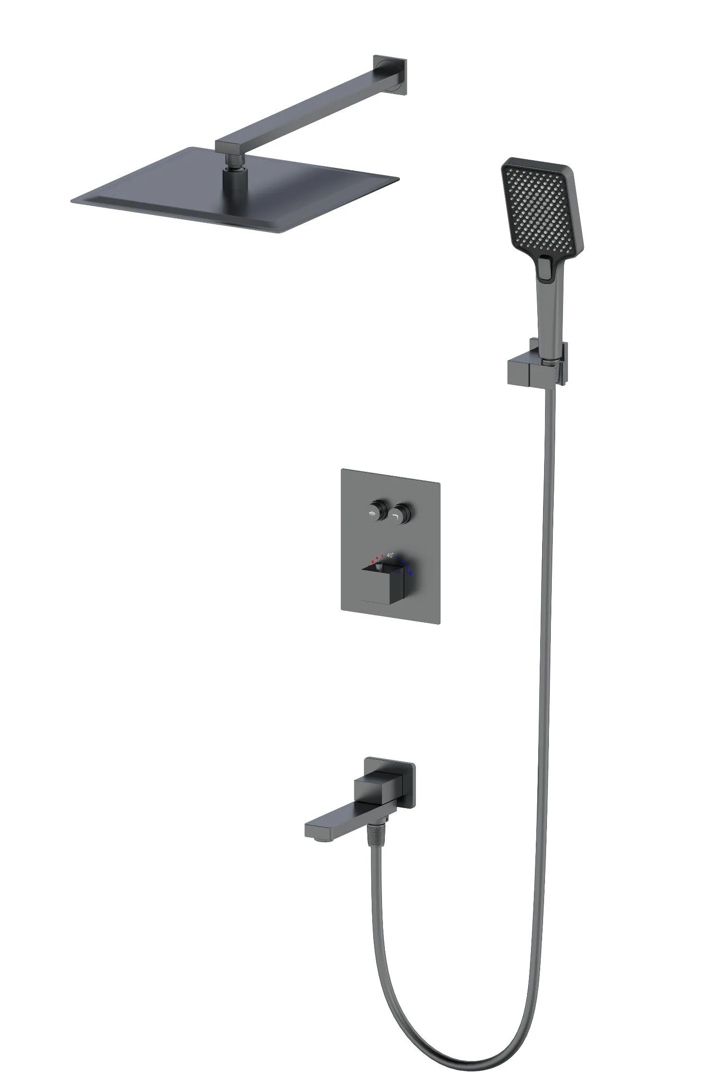 Душевая система Wonzon & Woghand WW-88929003-BGM встраиваемая, с изливом, термостатическая, темный графит