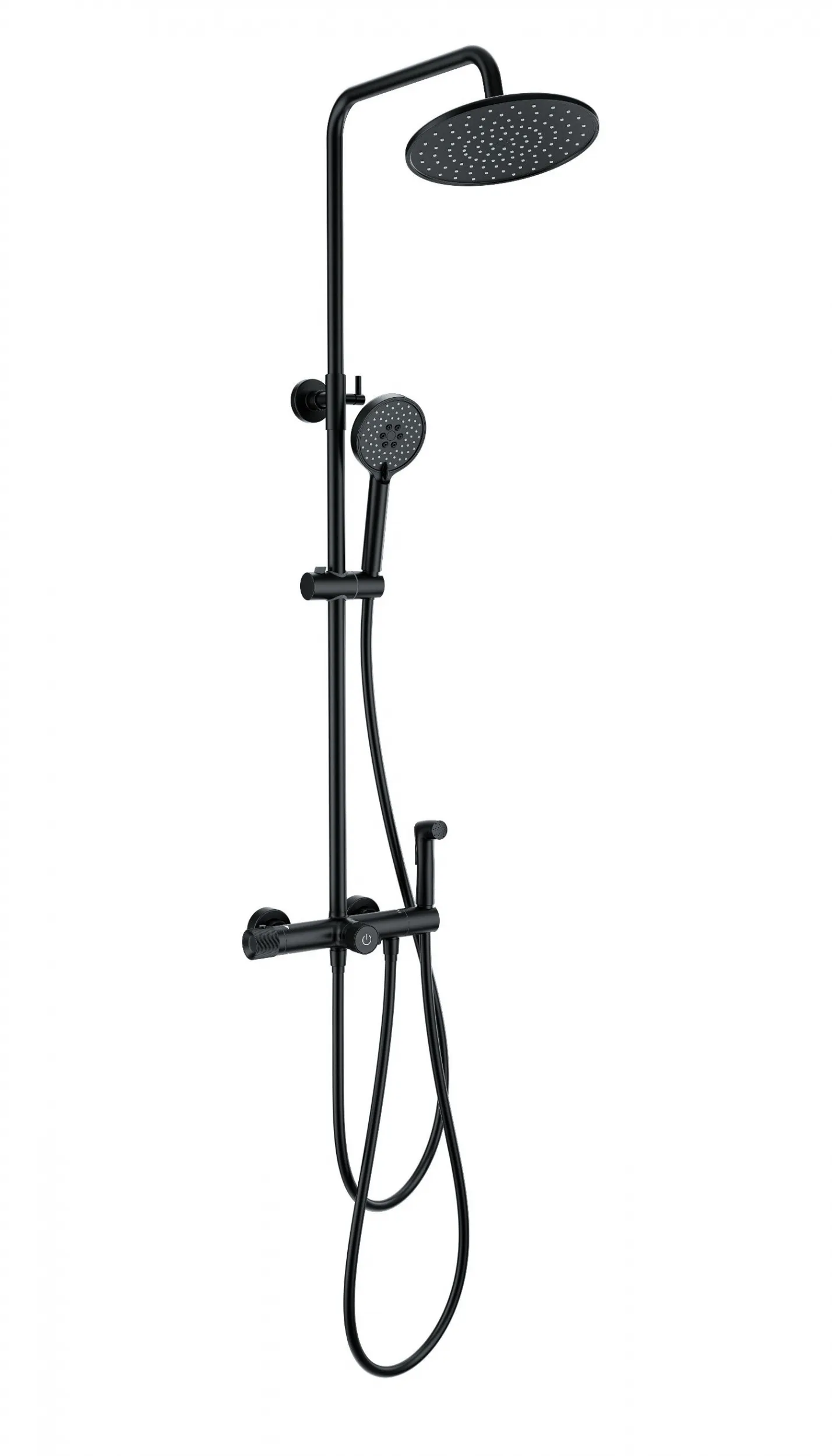 Душевая система Wonzon & Woghand WW-B3097-A-MB термостатическая, с техническим душем, чёрная матовая
