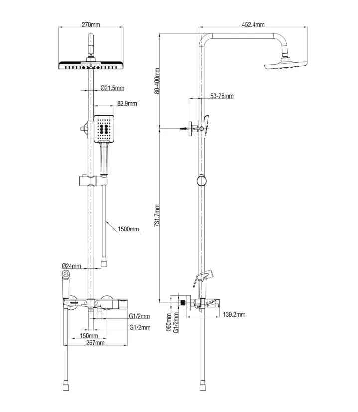 | Комплектация: | верхний душ , смеситель , термостат , кронштейн , шланг , держатель , лейка , стойка |