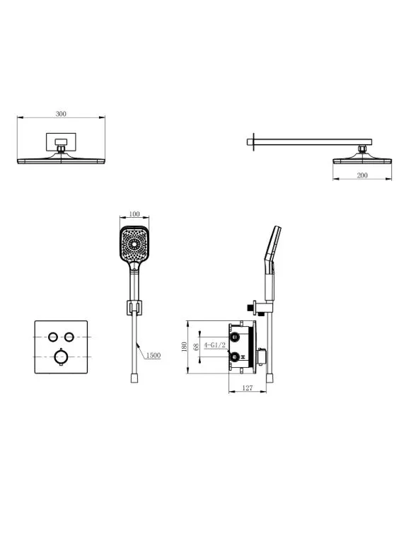 | Комплектация: | верхний душ , лейка , держатель , смеситель , термостат , кронштейн , шланг |