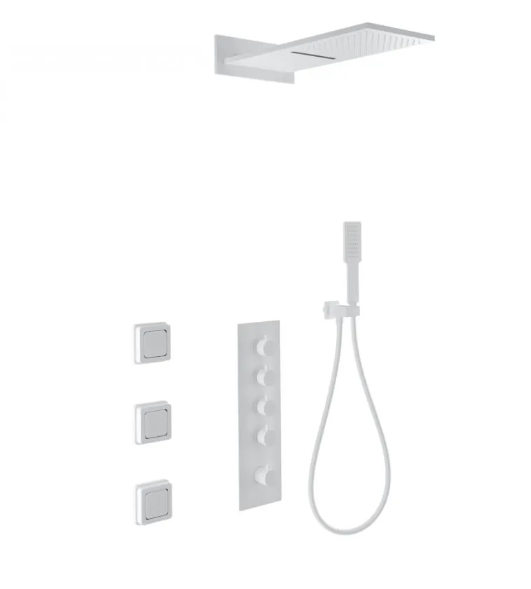 Душевая система Wonzon & Woghand WW-D4100-MW встраиваемая, с гидромассажем, термостатическая, белая матовая