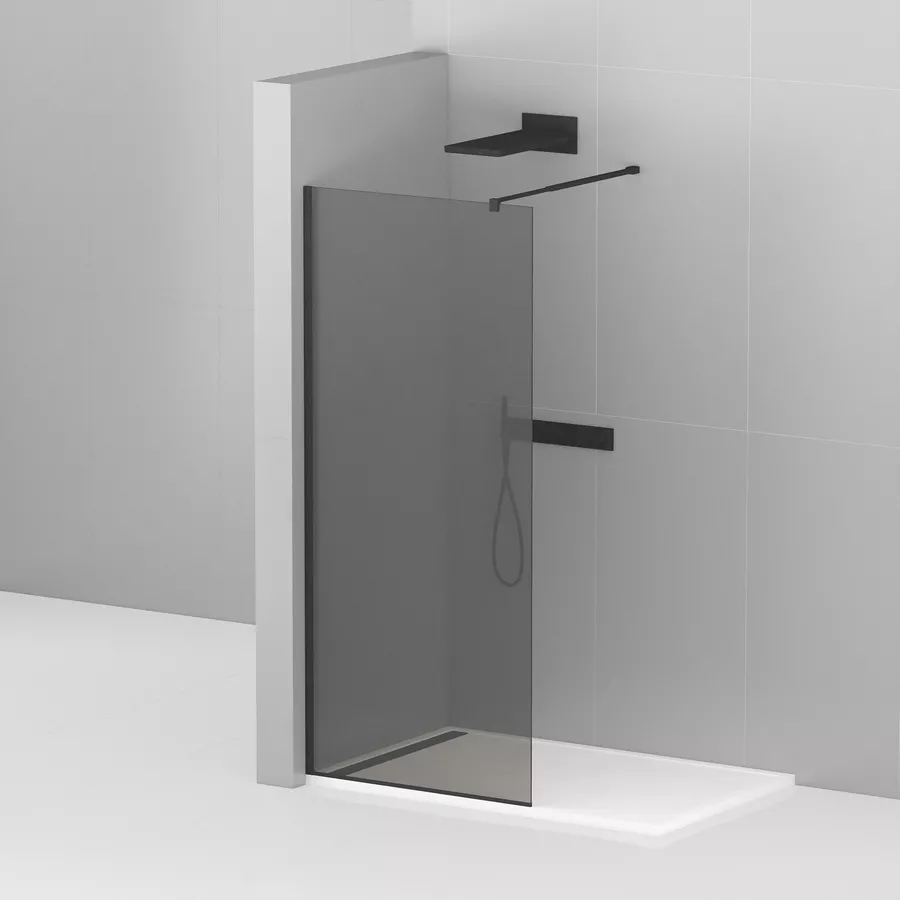 Душевая перегородка с односторонним входом, стекло графит, профиль чёрный, 1000x1950 мм