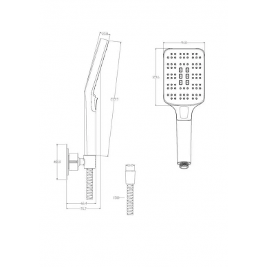 Душевой гарнитур FERRO (держатель лейки) 3 режима шланг 150 металл квадрат