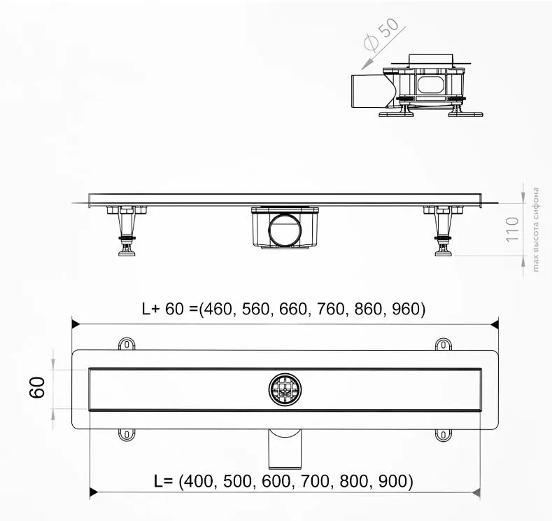 - Регулируемая монтажная высота от минимальной - 75 мм.