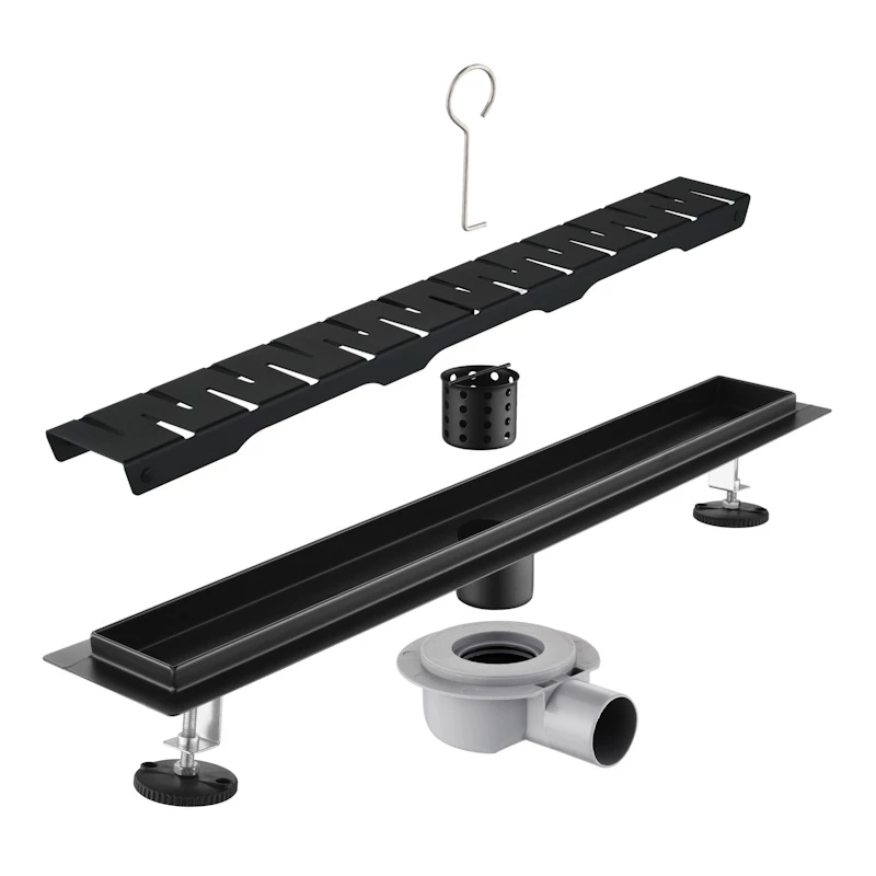 Стильный дизайн – линейная форма и матовый черный цвет делают трап заметным элементом интерьера и отлично подходят к современным душевым зонам.