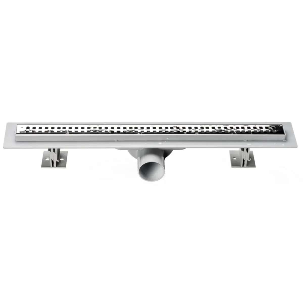 Дренажный канал из ABS-пластика, противозапаховый затвор, решетка из нержавеющей стали 1 мм, комплект регулируемых по высоте опор, пластиковый сервисный ключ.