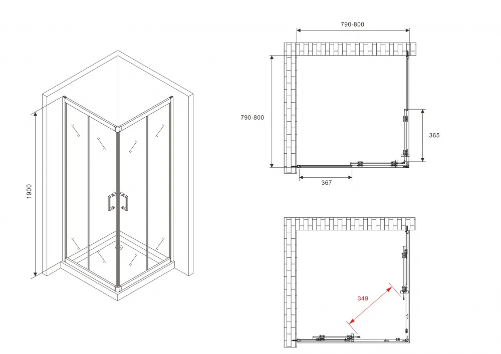 Душевой уголок Abber Schwarzer Diamant 80х80х190