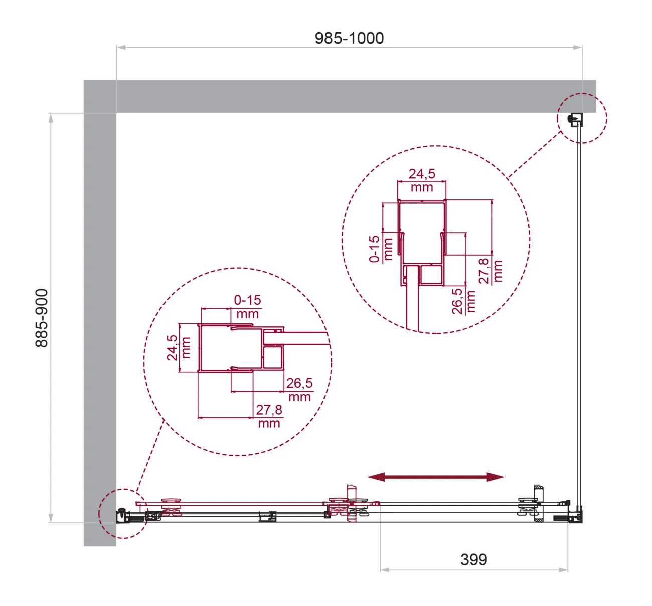 - Конструкция двери: раздвижная