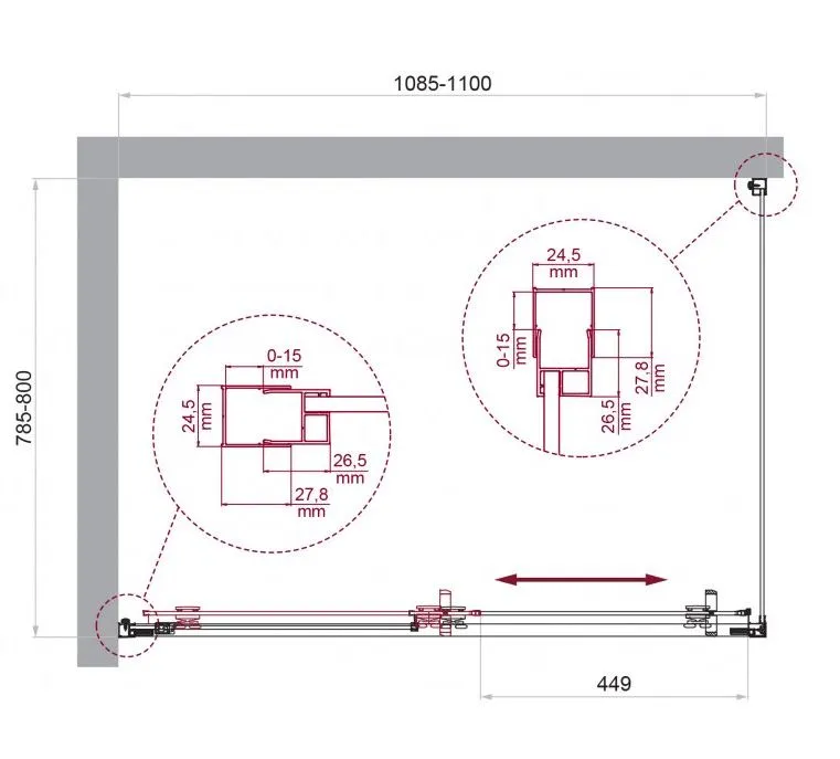 - Конструкция двери: раздвижная