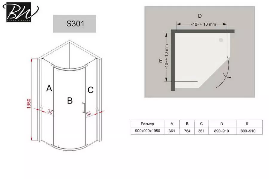Душевой уголок Black & White Stellar Wind S301 90х90