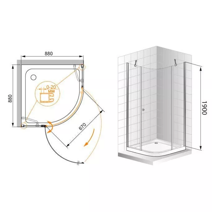 Душевой уголок Cezares Elena R11 90x90 правый прозрачное стекло