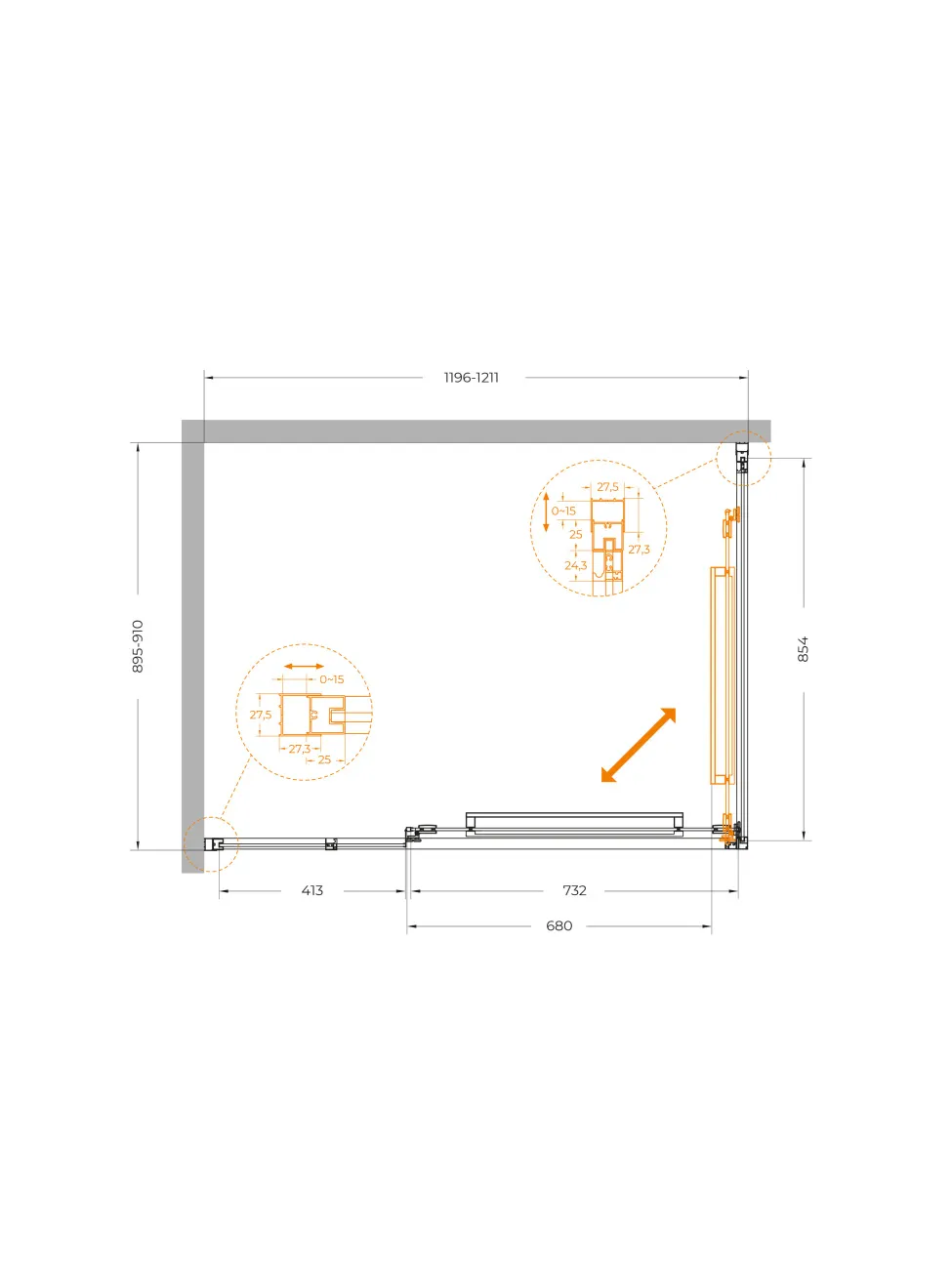 - Монтаж: пристенный в угол.