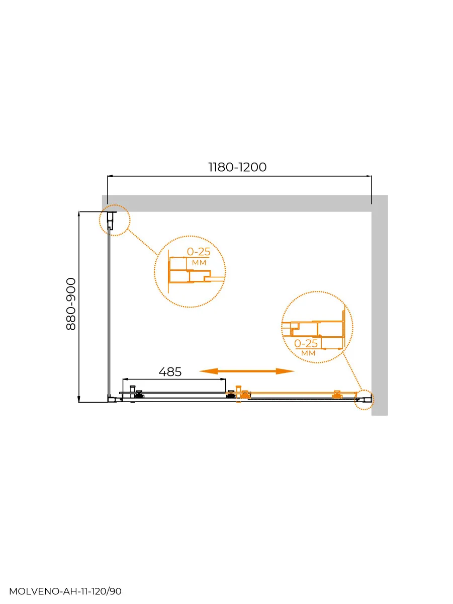- Регулировка ширины: предусмотрена за счет боковых профилей.
