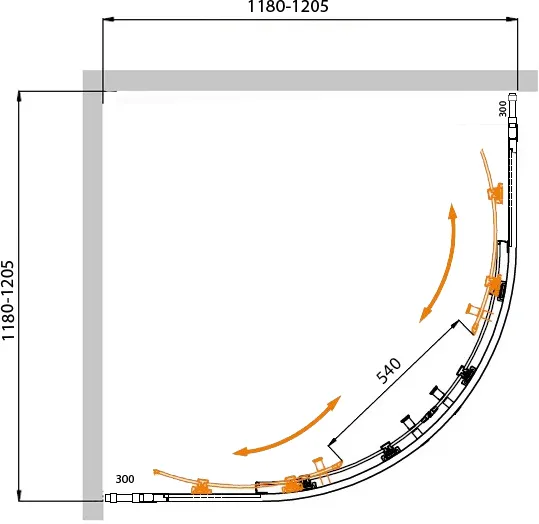 Душевой уголок Cezares Molveno MOLVENO-R-22-90+30-C-GM-IV 120x120 профиль оружейная сталь/стекло прозрачное