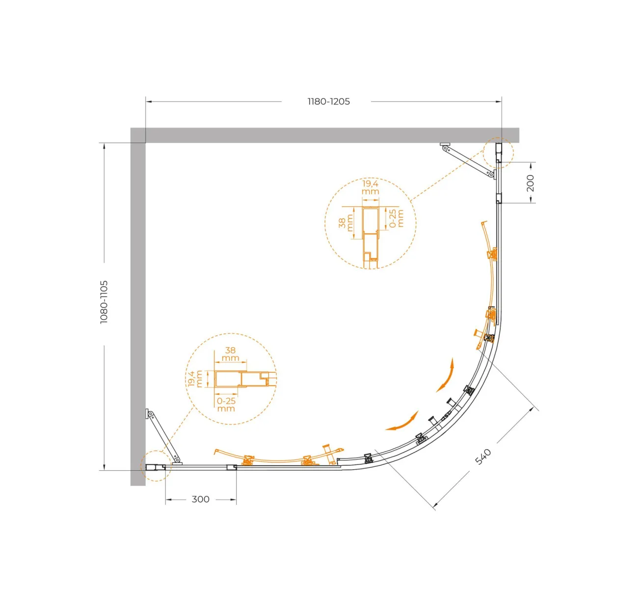 Душевой уголок Cezares Molveno MOLVENO-RH-22-120/110-C-GM-IV 120x110 профиль оружейная сталь/стекло прозрачное