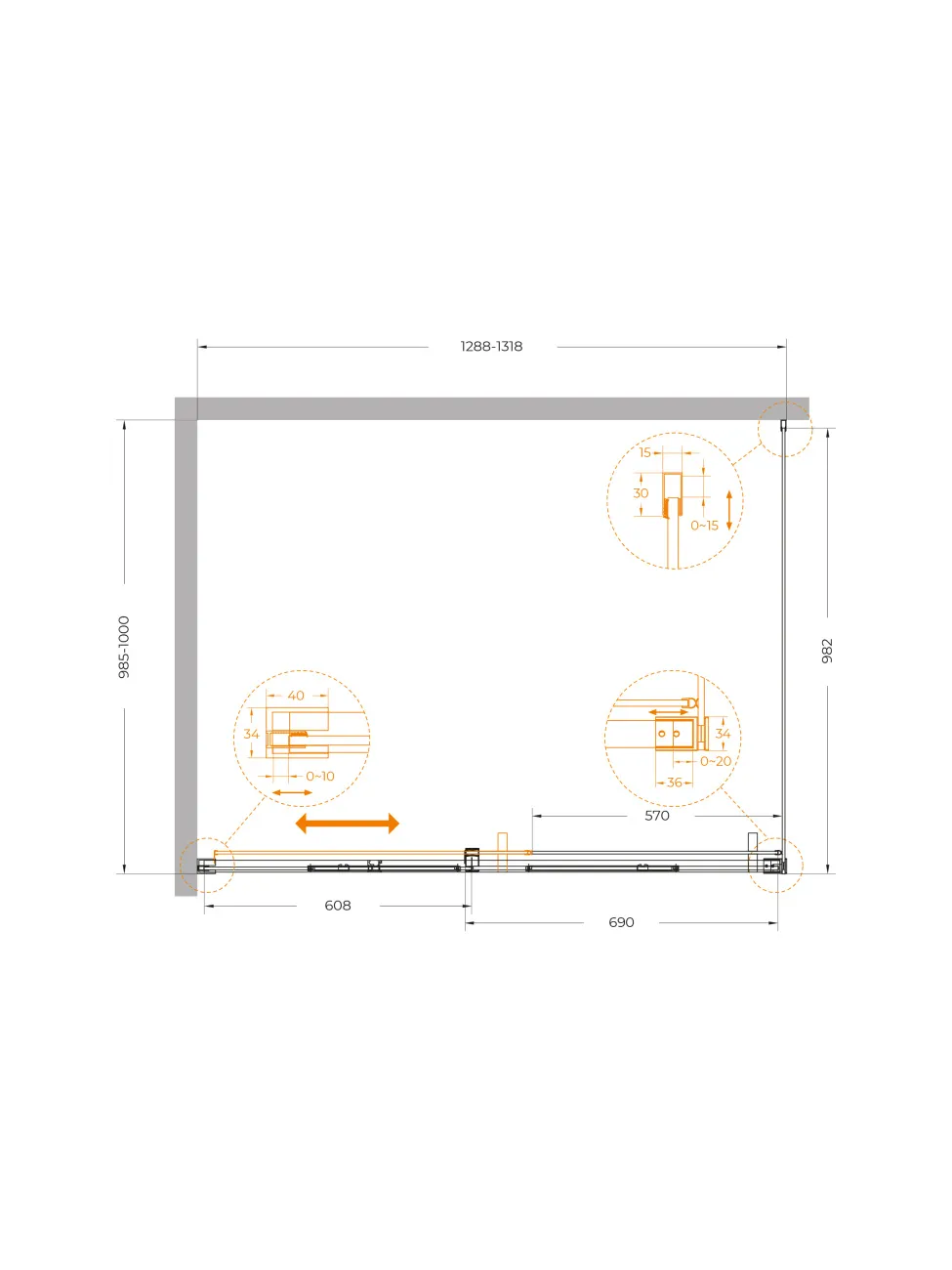 Душевой уголок Cezares Plane PLANE-AH-1-130/100-C-BORO 130x100 профиль брашированное золото/стекло прозрачное