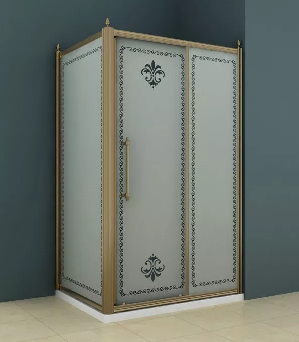Душевой уголок Cezares Retro Scorrevole AH1 130x90 матовое стекло с прозрачным узором бронза