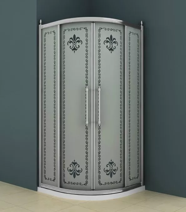 Душевой уголок Cezares Retro Scorrevole R2 90x90 матовое стекло с прозрачным узором золото