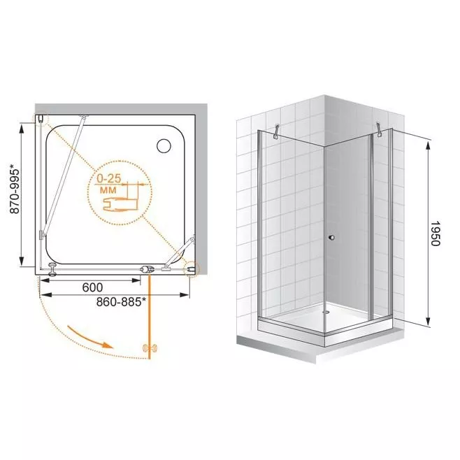 | TRIUMPH-A-12-100-C(P)-Cr-L(R) | 1000х1000х1950 | (960-985)х(970-995)х1970 | 600 |