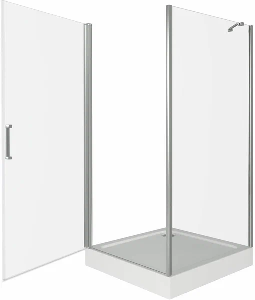 - выполнены из 6-ти миллиметрового закаленного, безопасного стекла с открывающейся двойной дверью наружу;