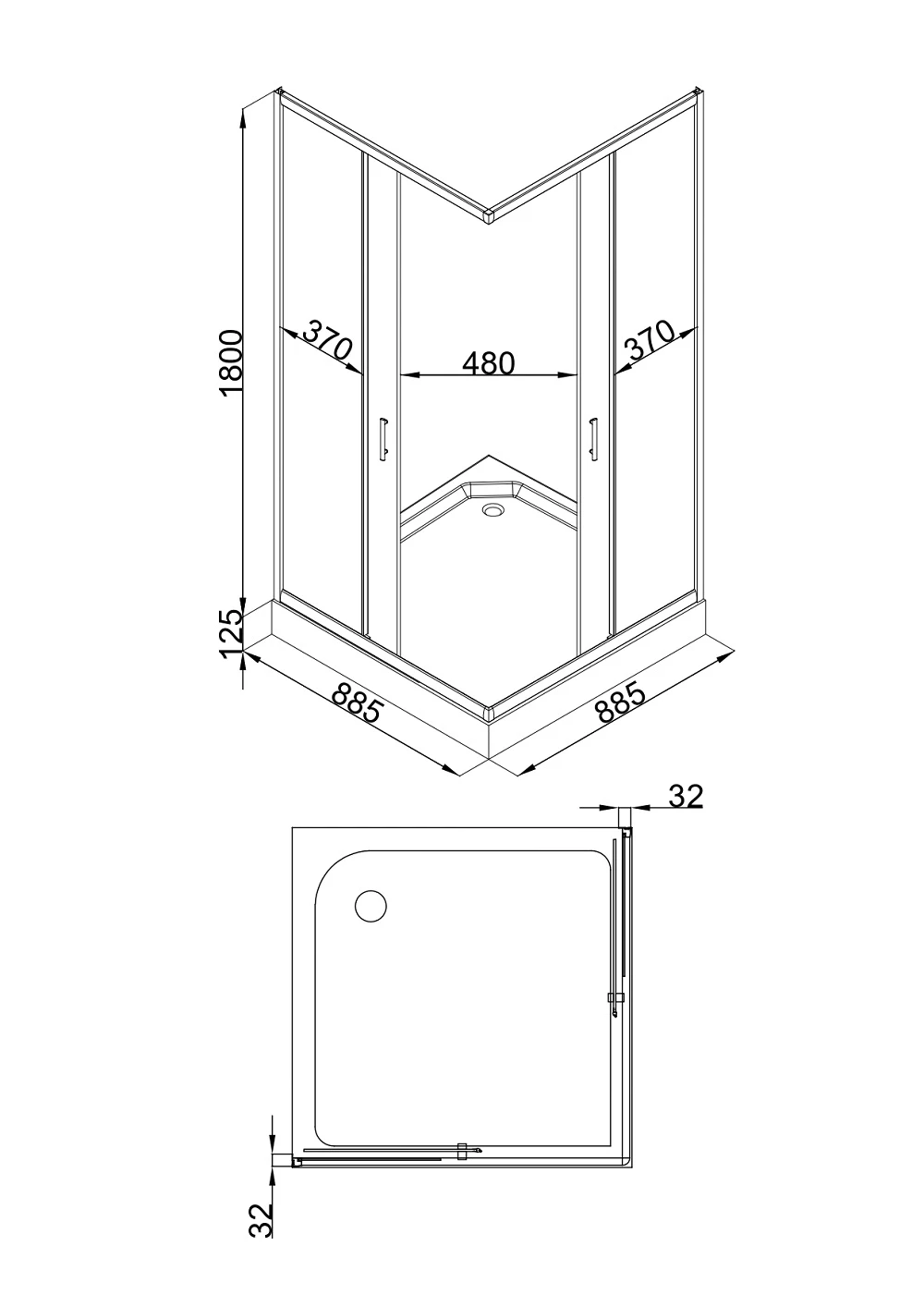 Душ. уголок MINO, матов. стекла, квадратный, хром (U_MN-90PMS-SD-C)