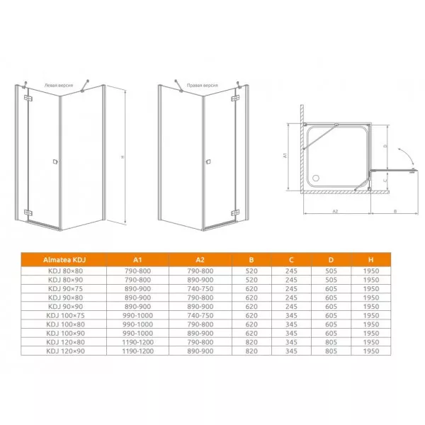 Душевой уголок Radaway Almatea Gold KDJ 32112-09-01NL 80х80 прозрачное стекло L