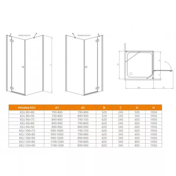 Душевой уголок Radaway Almatea Gold KDJ 32144-09-01NR 120х90 прозрачное стекло R