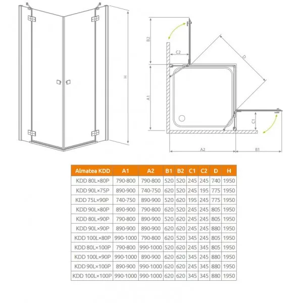 - Душевой уголок Radaway Almatea KDD (32181-01-05N) (100х80) графит (L)