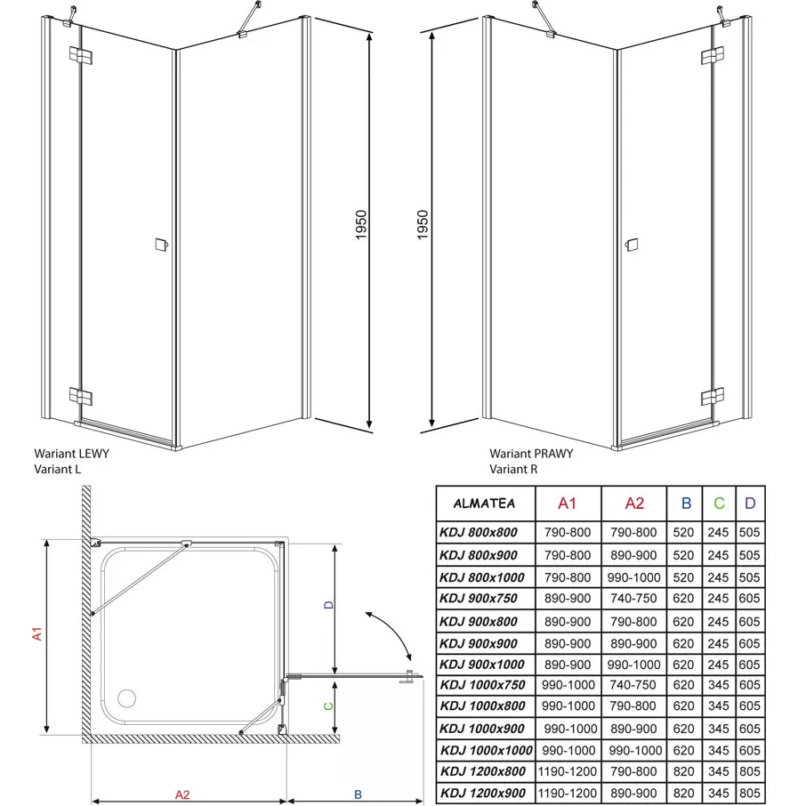 - Душевой уголок Radaway Almatea KDJ (32149-01-12NL) (80х100) интимато (L)