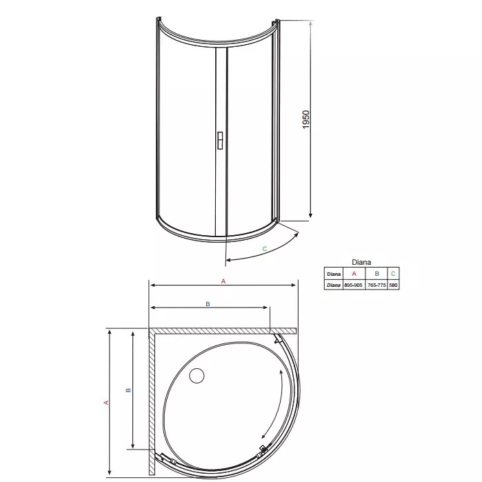 Душевой уголок Radaway Diana 30302-01-01NA 90х90 прозрачное стекло