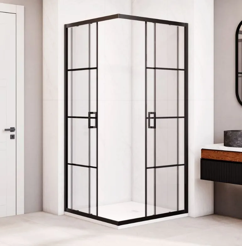 Душевой уголок RGW Passage PA-34B 80x80 профиль чёрный/стекло прозрачное с рисунком чёрный принт