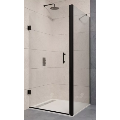 Распашная дверь из полностью прозрачного, но прочного стекла толщиной 6 мм с покрытием EasyClean создаст эффект свободного пространства в душевой, а обрамление из нержавеющей стали и цинка в черном цвете только подчеркнет этот свободный воздушный объем.