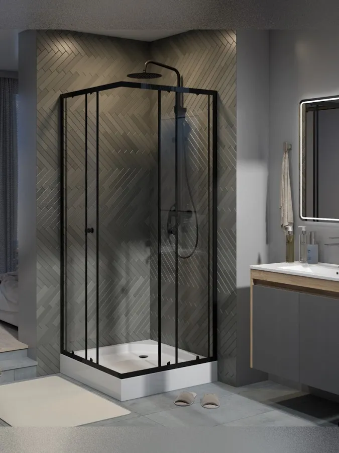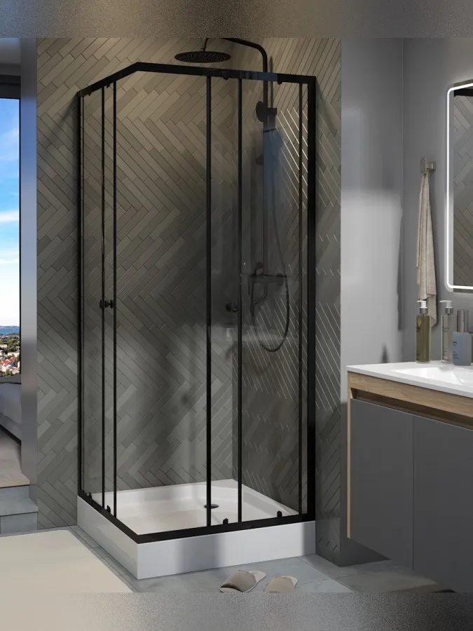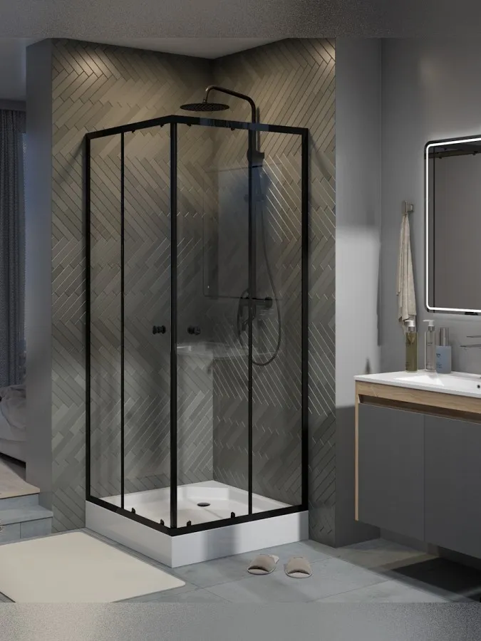 Комплектация: профиль, поддон, сифон клик-клак, стеклянные панели и двери, силиконовый уплотнитель, крепеж, ролики, документаци.