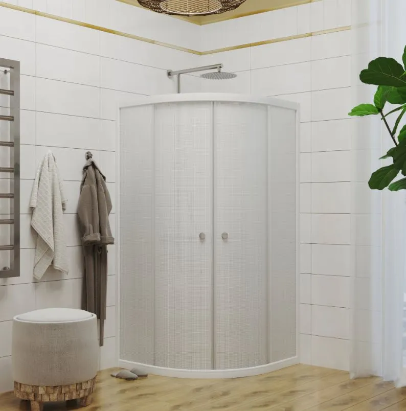 Душевой уголок Triton Стандарт 100х100 профиль белый/стекло лён с узором