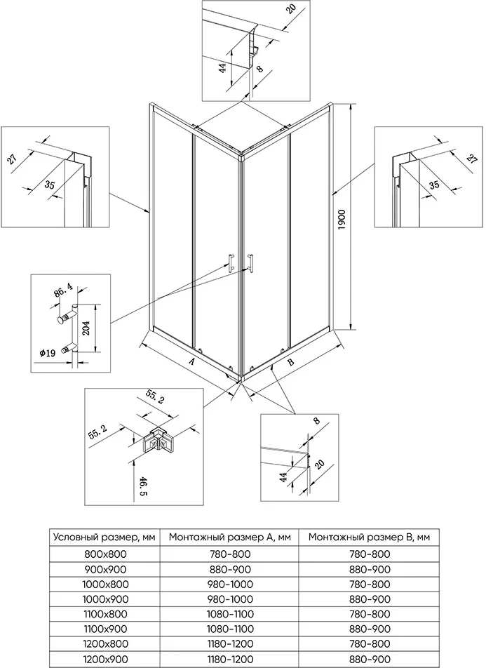 | Монтаж: | на поддон , напольный , пристенный в угол |