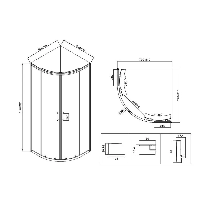 Душевой уголок Vincea City VSQ-5CT800CL 80х80х195см, профиль хром/стекло прозрачное