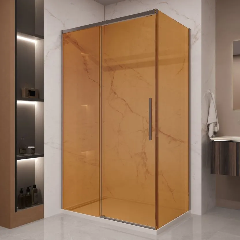 Душевой уголок Vincea Stella VSR-1ST9012GSGM 120х90х200 см, профиль вороненая сталь/стекло янтарь