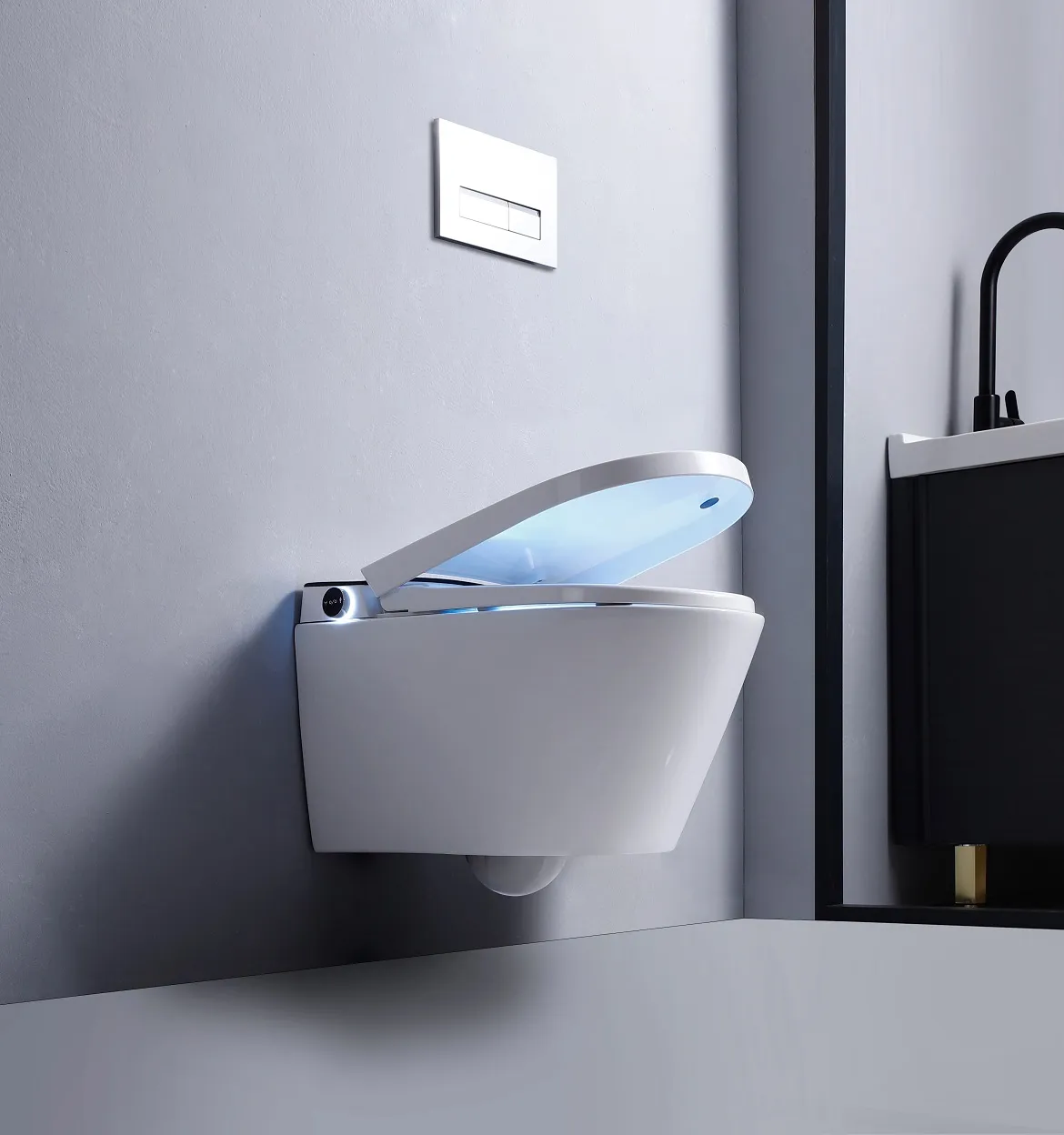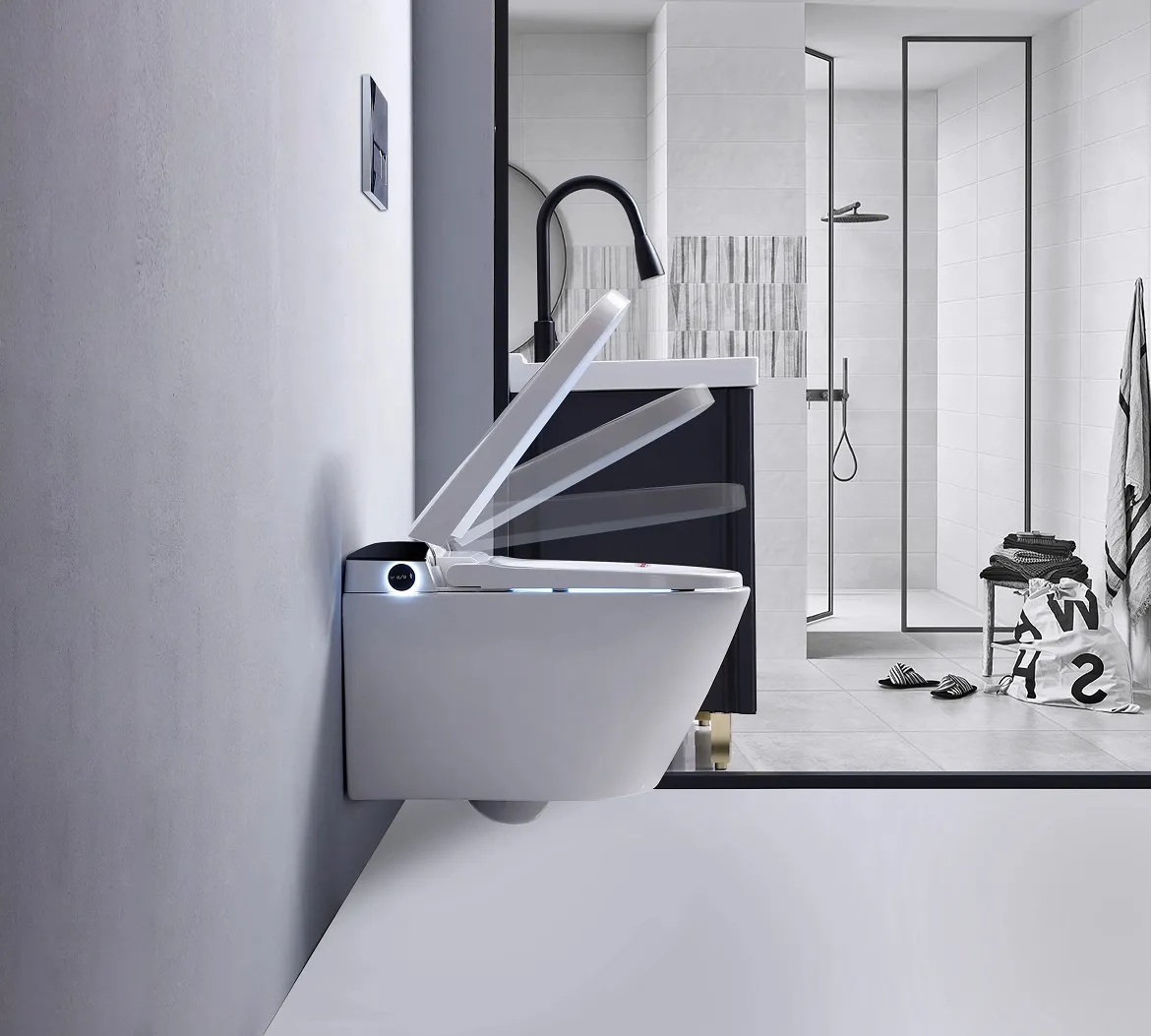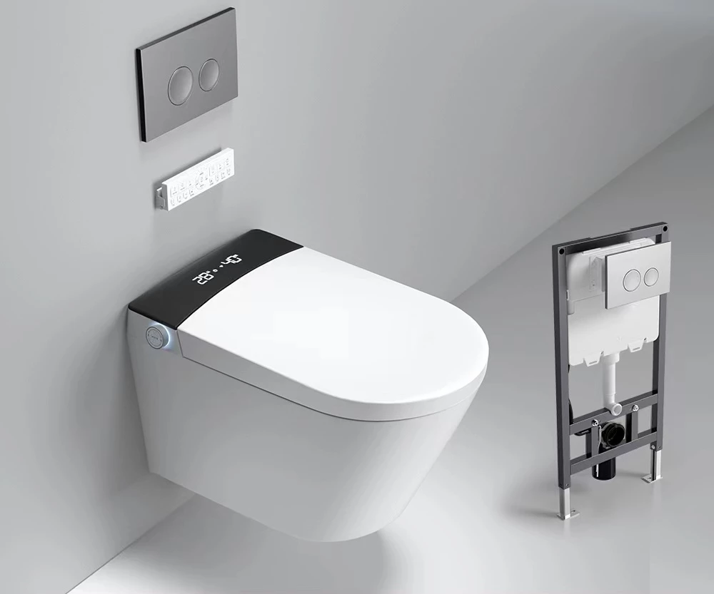 Электронный унитаз оснащен встроенным резервуаром, автоматическим смывом, который также работает с отключенным питанием, сушкой, автоматическим открытием/закрытием крышки, регулировкой температуры сиденья, воды, сушки, давления, функциями биде, самоочищающей форсункой. ДУ пульт управления, боковая кнопка управления функциями, дисплей, ночная подсветка, открытие сиденья и крышки касанием ноги, спуск касанием ноги, UV стерилизация, режим клизмы, нано-антибактериальное покрытие сиденья Напряжение 110/220V