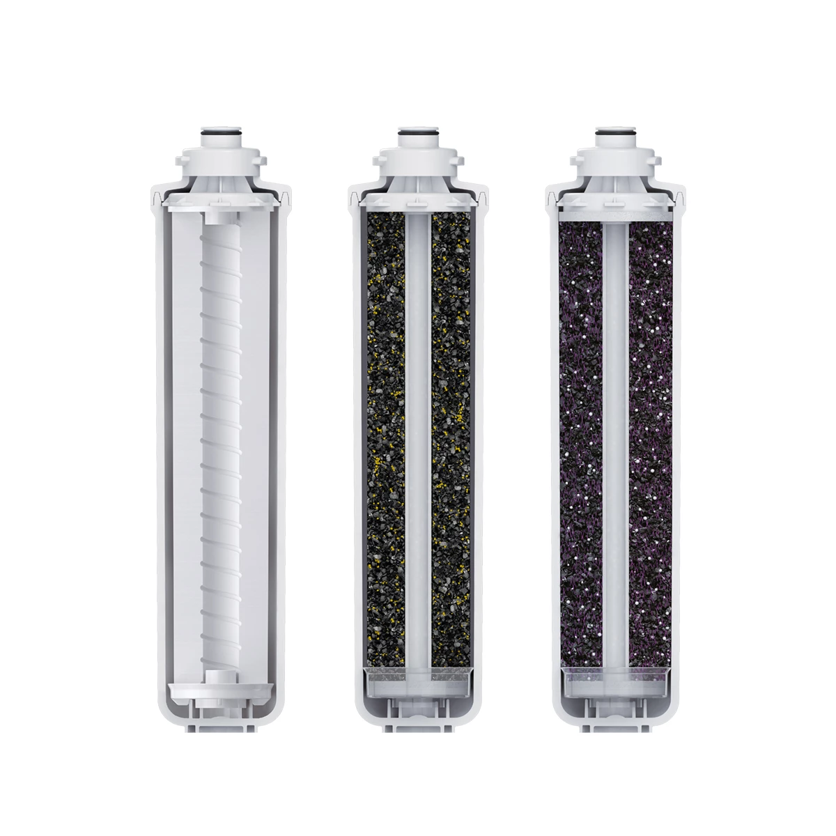 В комплекте сменных картриджей BASIC три этапа очистки: Картридж "Механические примеси"из полипропиленовых волокн удаляет из воды механические примеси до 5 мкм (песок, ил, окалина, ржавчина и т.д.). Картридж " Хлор и тяжелые металлы" -гранулированный активированный уголь, обработанный серебром, устраняет хлор, запахи, а также тяжелые металлы (свинец, медь, кадмий и другие). Картридж "Запахи и привкусы" - кокосовый активированный уголь кондиционирует воду и завершает очистку, избавляя её от неприятных привкусов и остаточного хлора. ПЕРИОДИЧНОСТЬ ЗАМЕНЫ КАРТРИДЖЕЙ: не реже 1 раза в год.