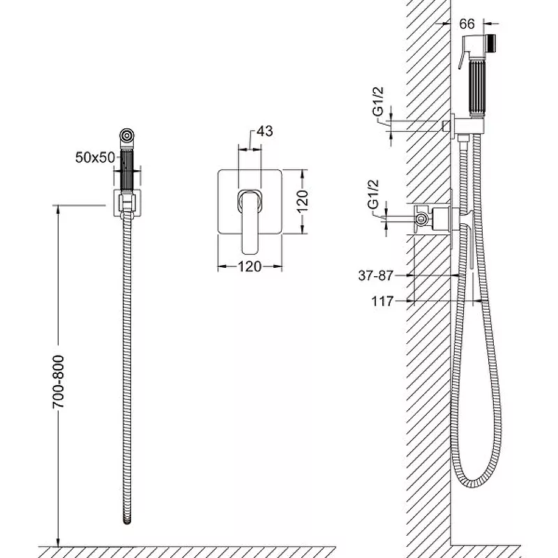 гигиенический душ со смесителем; встраиваемая часть для смесителя.