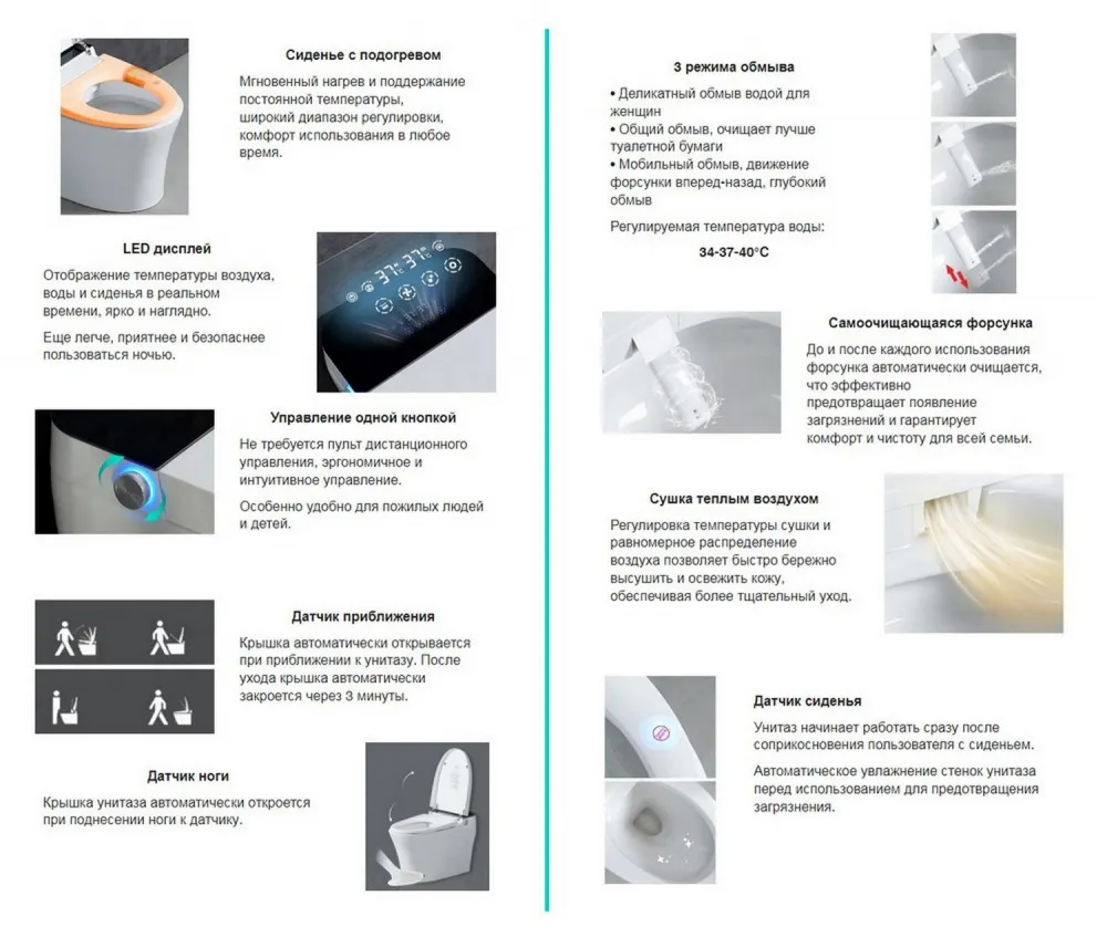 - крышка и сиденье открываются автоматически