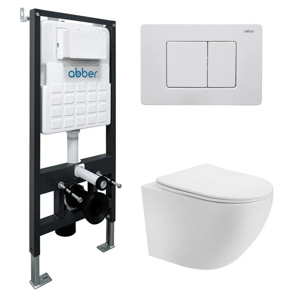 Инсталляция Abber в комплекте с унитазом Bequem AC1100T белый с инсталляцией AC0105 и кнопкой AC0120MW белая матовая
