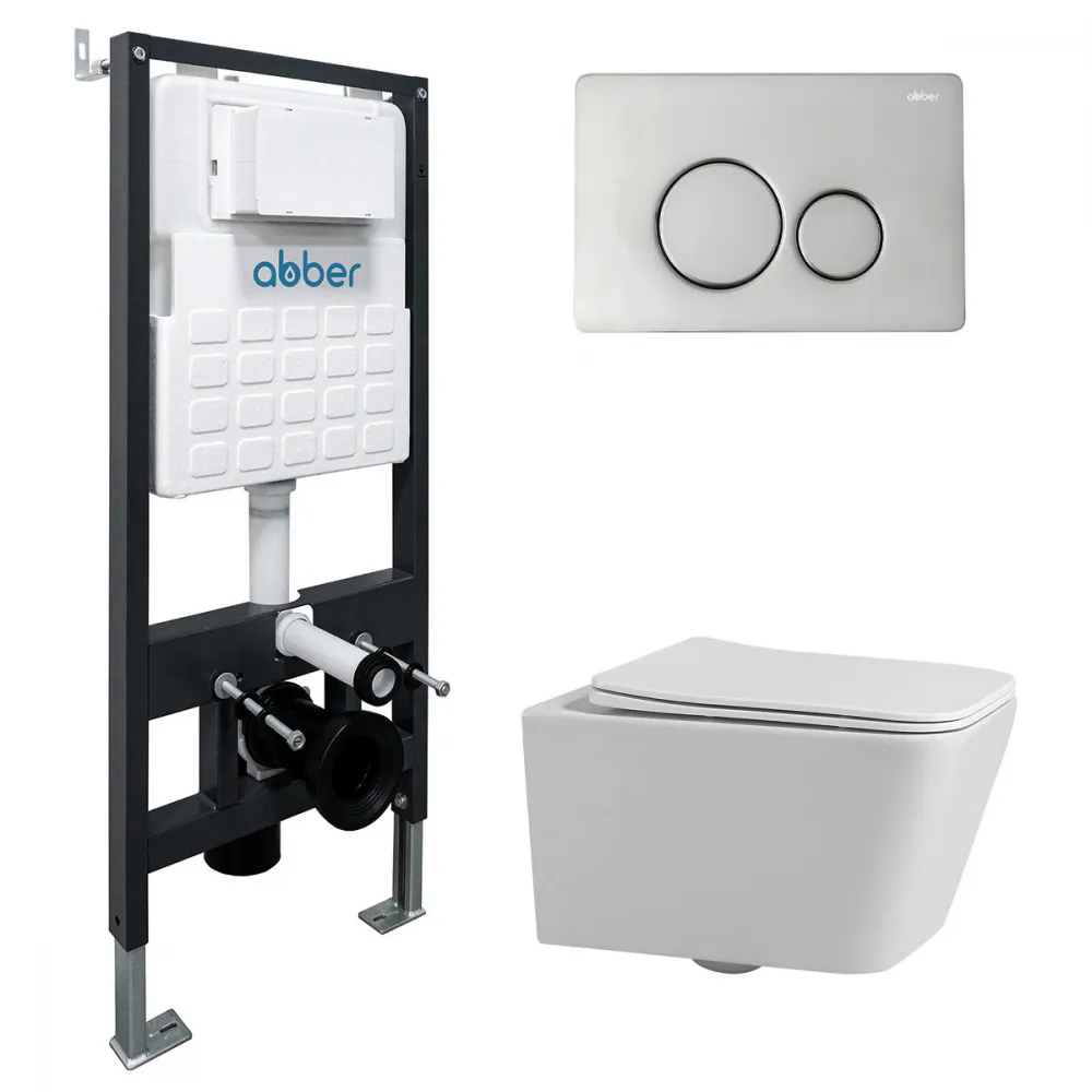 Инсталляция Abber в комплекте с унитазом Rechteck AC1201 белый с инсталляцией AC0105 и кнопкой AC0121 хром