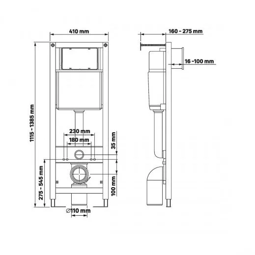 - Инсталляция Berges Atom 410 040331 со смывным бачком и клавишей смыва цвета хром.