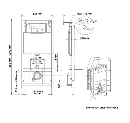 - Объем смыва 3/6 литра с возможностью регулировки.