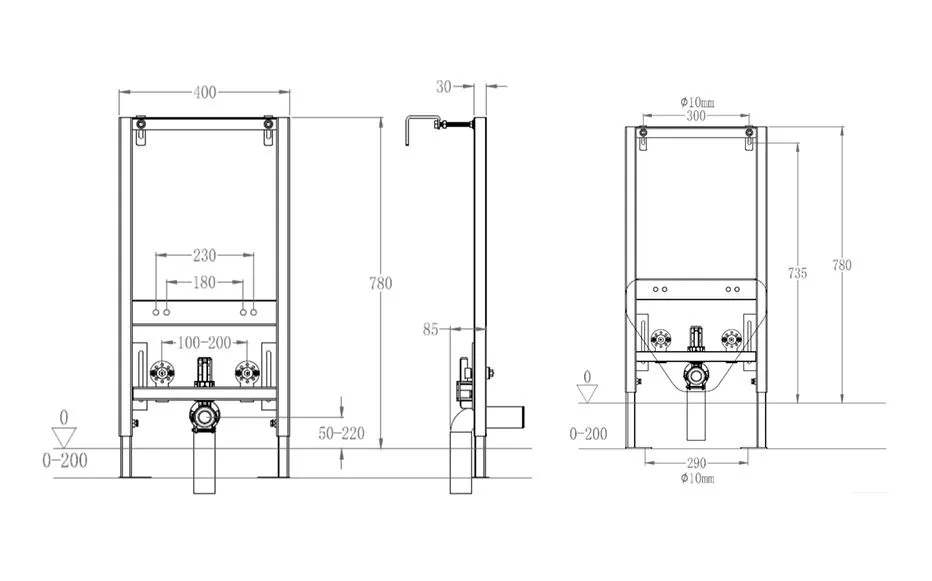 Инсталляционная система Wonzon & Woghand представляет собой передовое инженерное решение для скрытого монтажа сантехнического оборудования, обеспечивая высокую надежность и удобство в эксплуатации. Эта настенная (встраиваемая) система позволяет регулировать высоту монтажа, что обеспечивает гибкость при установке. Преимущества инсталляций Wonzon & Woghand • Рабочая нагрузка: до 400 кг (статическая) • Запас прочности 1:3 к номинальной нагрузке • Механические испытания на 120 000 нагрузочных циклов • Температурный диапазон эксплуатации: от -15°C до +45°C • Жесткая несущая рама из горячеоцинкованной стали 2.0 мм, монтажная пластина унитаза - 3.0 мм коррозионная стойкость по стандартам ASTM B117