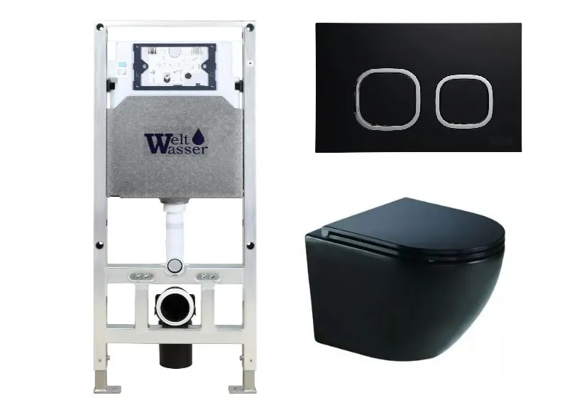 Инсталляция Welt Wasser AMBERG 506 ST + MERZBACH 041 XL MT-BL + Amberg RD-BL в комплекте с унитазом, безободковый, с сидением микролифт